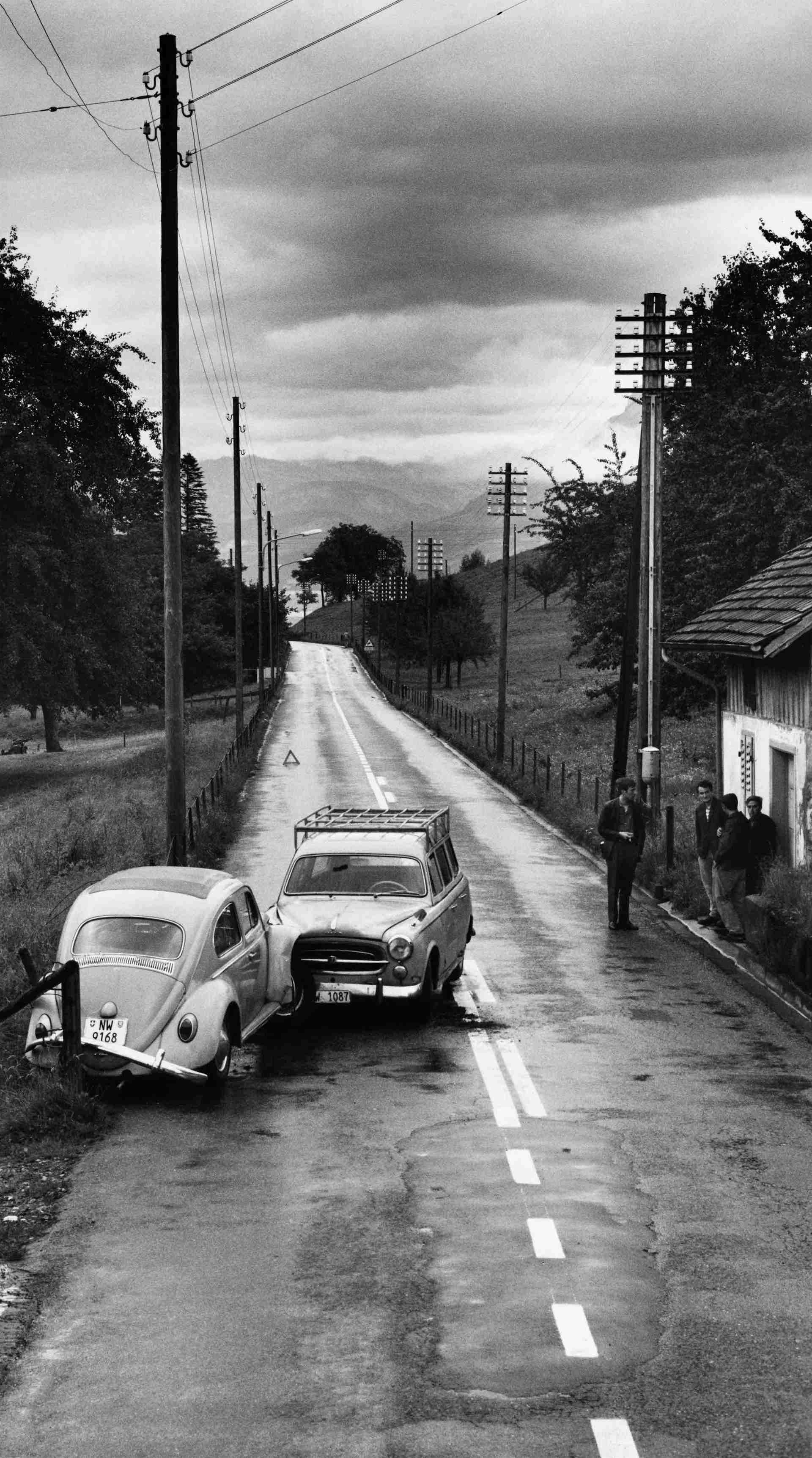 Leggi i suoi articoliArnold Odermatt (Stans, 1925-2021) avrebbe compiuto cent’anni nel 2025. Ex agente di polizia del Canton Nidvaldo, in Svizzera, per tutta la vita ha fotografato incidenti stradali, trasformando carcasse d’auto e segni sull’asfalto in immagini sospese tra cronaca e astrazione: quello che poteva restare un archivio tecnico è diventato, grazie al suo sguardo acuto e preciso, un catalogo poetico del caso. Accanto a questi lavori, Odermatt ha raccontato anche la vita quotidiana della sua comunità alpina (feste di paese, colleghi in divisa, ritratti familiari) componendo un mosaico curioso e ironico di una parte della Svizzera.