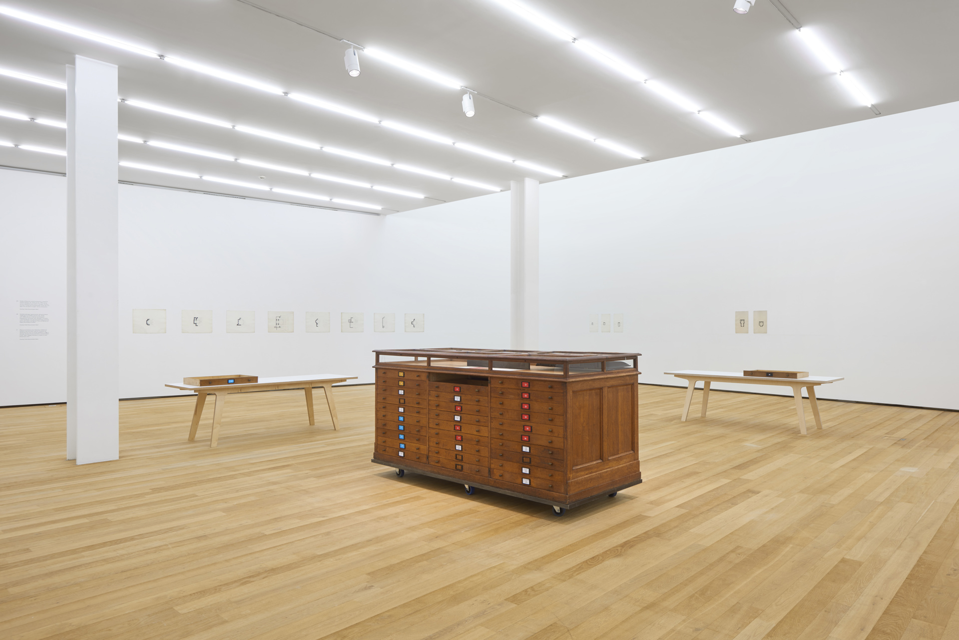 La curatrice Eva Brioschi, durante la sua vasta ricerca sul progetto, si avvicina alla figura di Iliazd (pseudonimo di Ilia Zdanevich, Tbilisi, 1894-Parigi, 1975), a cui Duchamp commissionò la costruzione e l’assemblaggio della «Boîte» serie C, trovando una personalità artistica unica per spessore culturale, coerenza e complessità di pensiero. «Toutité-Iliazd. Lo Studio della Forma», visitabile presso la Fondazione Antonio Dalle Nogare fino al 27 giugno, è la più grande retrospettiva italiana dedicata al poeta, editore, scrittore, drammaturgo, tipografo, designer, cartografo e artista georgiano. Curata da Brioschi insieme a Julia Marchand, cocuratrice del Padiglione Georgia alla Biennale Arte 2024 con un progetto dedicato a «65 Maximiliana o la pratica illegale dell’astronomia» (1964), libro d’artista creato da Iliazd insieme a Max Ernst, la mostra presenta pubblicazioni, appunti, stampe e materiali d’archivio che permettono di addentrarsi tra le molte sfaccettature di questa personalità. La prima parte dell’esposizione è allestita al piano terra. Al centro della sala troviamo una grossa cassettiera museale: non si tratta di un semplice mobile, ma di un’installazione artistica di Gaspar Willmann e Jeanne Turpault chiamata «Cabinet Institute», istituzione fittizia che ospita nei suoi cassetti una collezione permanente e un display temporaneo, che il pubblico è invitato ad aprire e esplorare come fossero tante piccole sale. Quest’installazione verrà attivata venerdì 22 maggio con una performance orchestrata da Willmann e Turpault, come parte del programma collaterale della mostra.