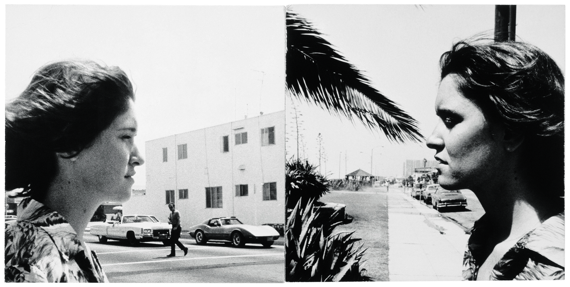 John Baldessari, «Kissing Series: Susan. Nose Touching Building; Palm Frond», 1975. © John Baldessari 1975. Courtesy Estate of John Baldessari © 2025. Courtesy John Baldessari Family Foundation; Sprüth Magers