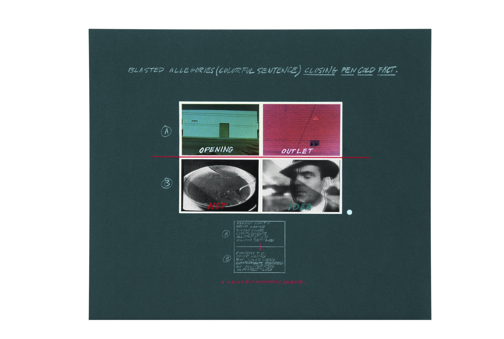 John Baldessari, «Blasted Allegories (Colorful Sentence): Closing Pen Cold Fact», 1978. © John Baldessari 1978. Courtesy Estate of John Baldessari © 2025. Courtesy John Baldessari Family Foundation; Sprüth Magers