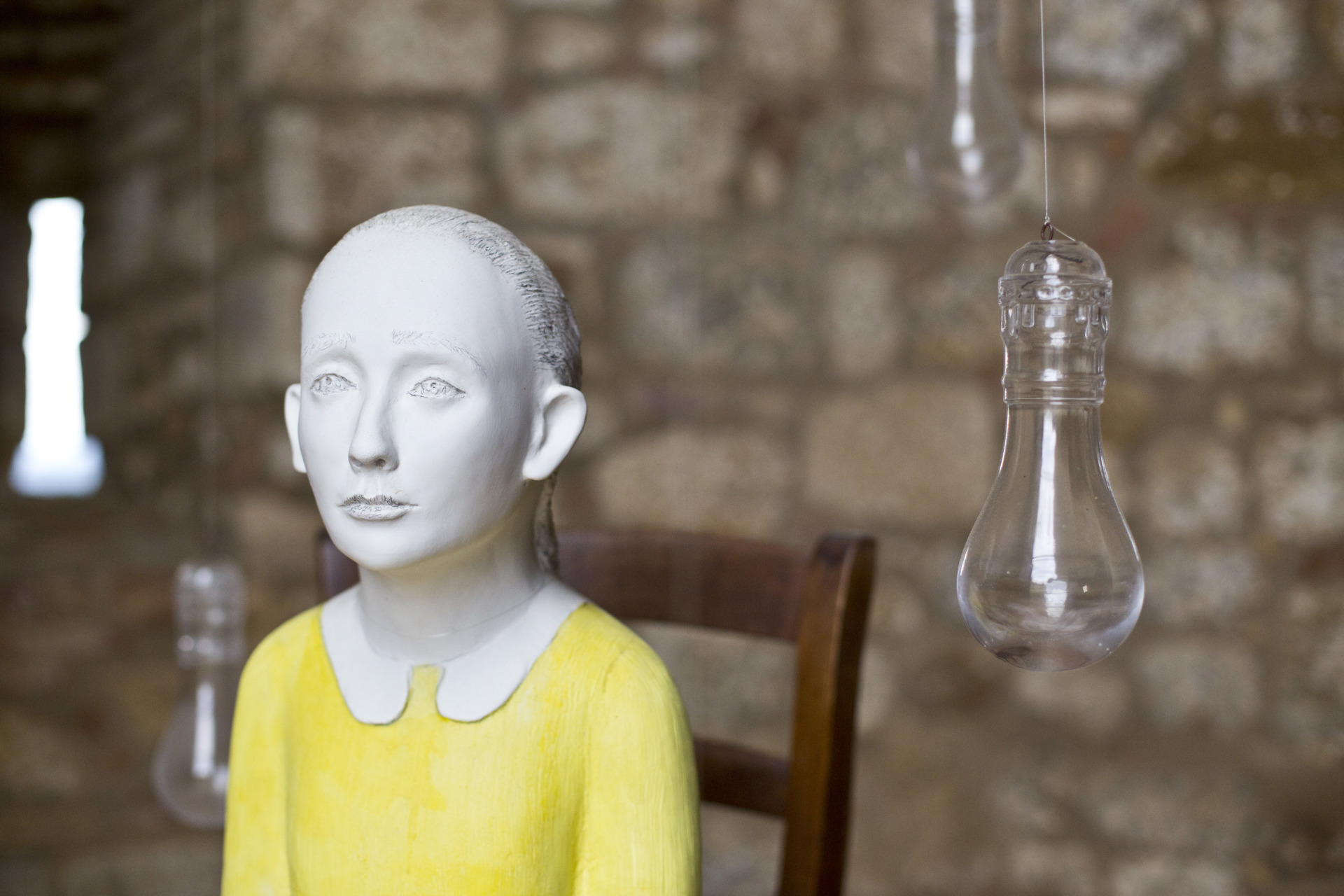 Anche questa volta si tratta di connessione tra la storia e il futuro. Gli archi di questo edificio non erano nati per accogliere opere, ma in fondo rimandano alle nicchie dei monumenti o nelle chiese: l’installazione site specific si intitola «Unclear Mother Without Child» e consiste in cinque vasi di cristallo vuoti. Infatti, una madre senza figlio non esiste, è una contraddizione, ma esisterà e i vasi vuoti a questo alludono: c’è quindi un riferimento temporale. E poi, in fin dei conti, anche la Vergine col Bambino nella tradizione iconografica antica è una contraddizione.