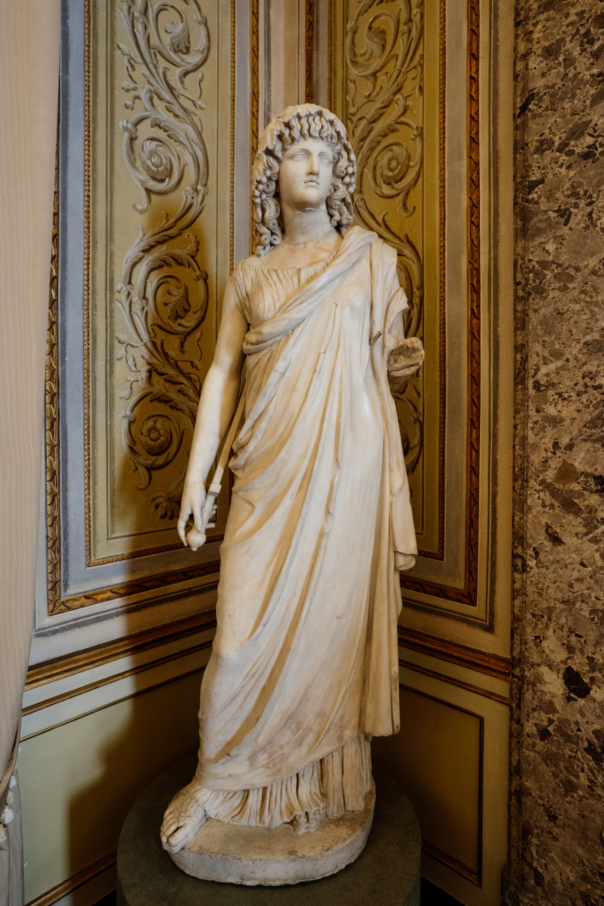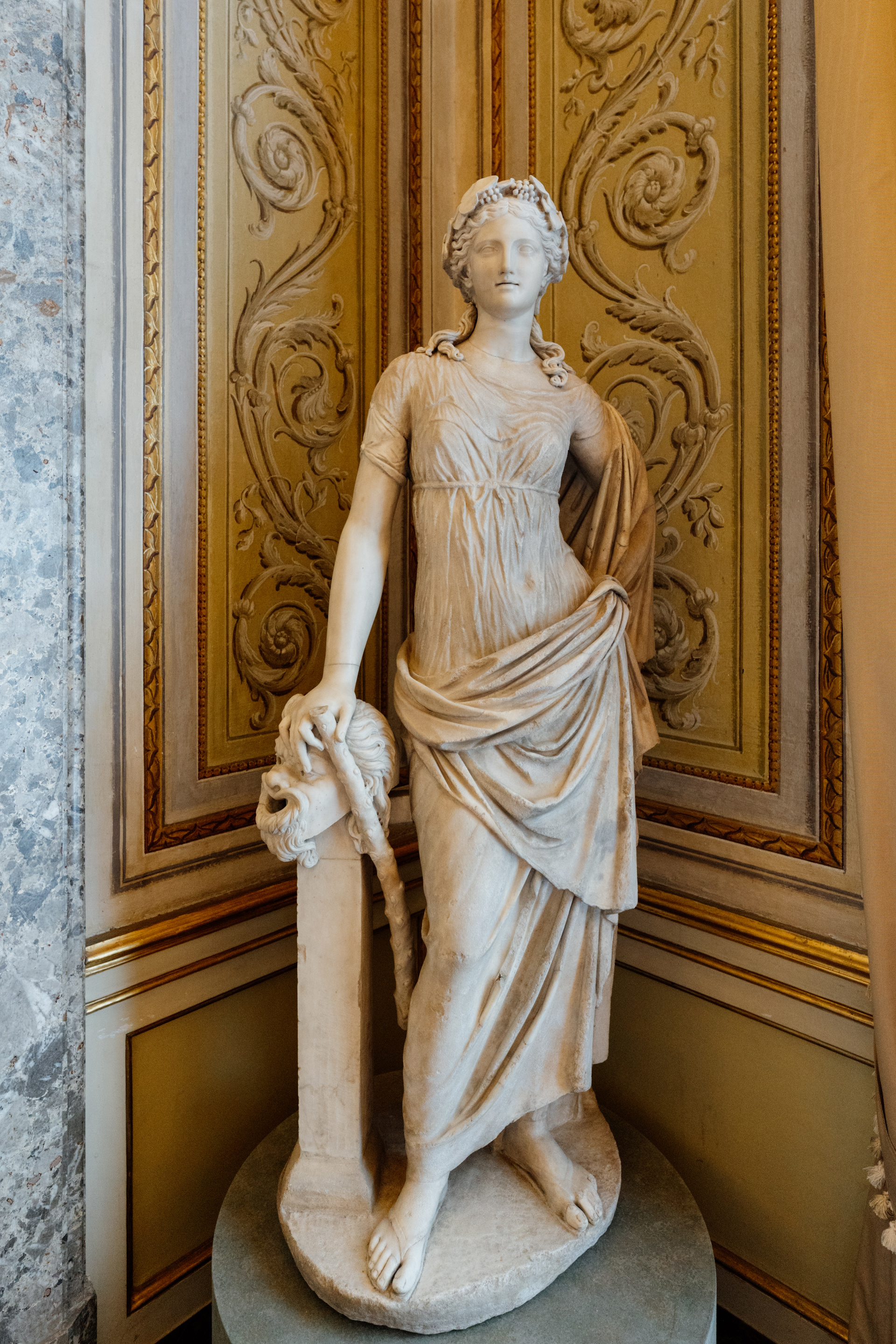 Talia, musa della Commedia e della Tragedia, dalla Collezione Farnese II sec. d.C., con restauri e integrazioni tra la fine del XVIII e i primi decenni del XIX secolo (particolare)
