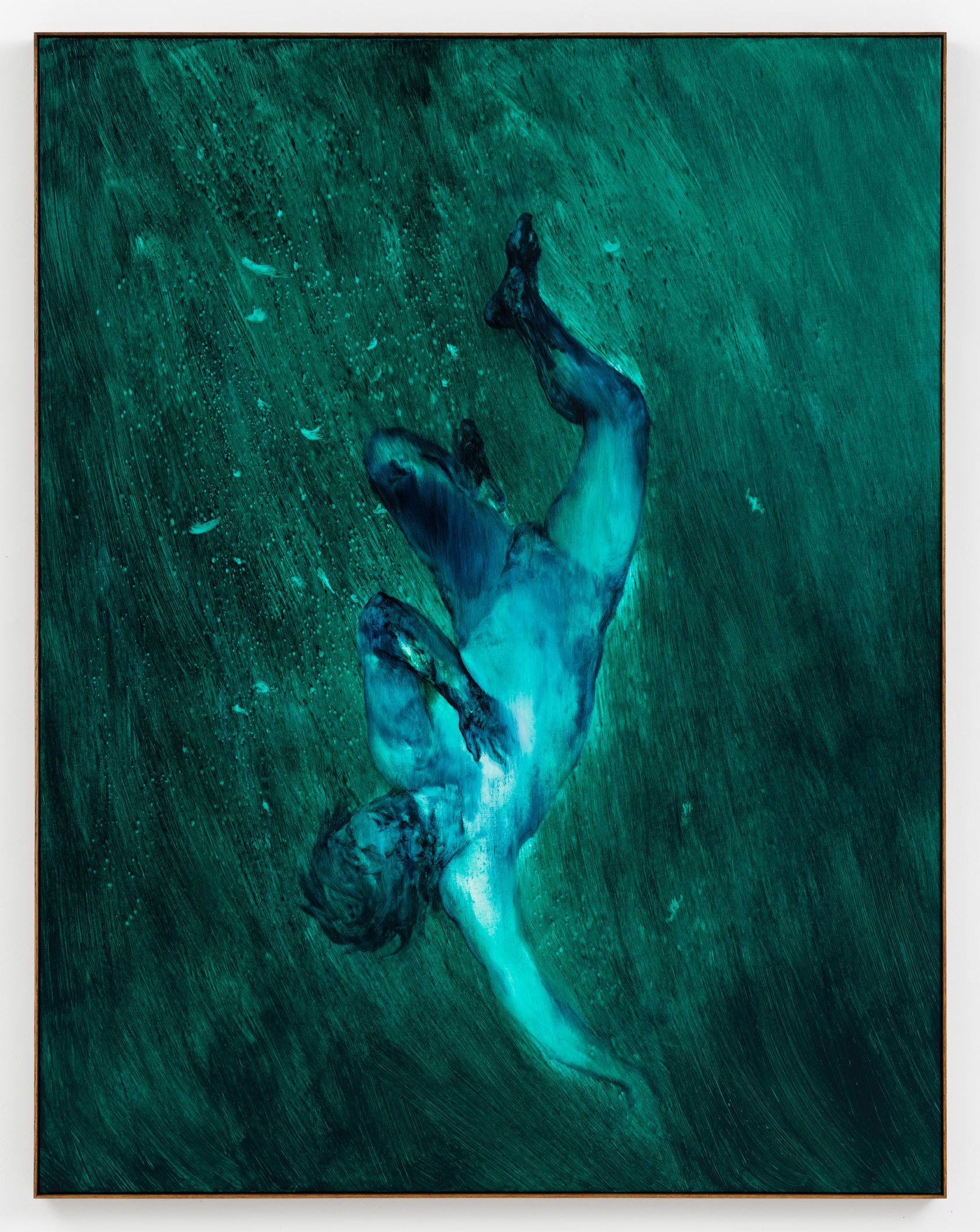 Anni fa ho trovato un’incisione, probabilmente di un artista fiammingo minore, che ho conservato sapendo che prima o poi l’avrei usata. Nel dipingere Rescue ho trasformato Icaro in una versione di me stesso: un corpo maschile che cade nell’aria o rimbalza sull’acqua. Pensavo alle sensazioni evocate dai miei sogni, ma avevo in mente anche le immagini delle tragedie migratorie in mare. Non volevo però che l’opera diventasse un’immagine politica esplicita, quindi ho mantenuto questo riferimento come qualcosa di personale. Eppure, quando è stata esposta alla Bibliothèque Nationale de France, il pubblico l’ha immediatamente associata alla migrazione, cosa che mi ha sorpreso, dato che non ne avevo mai parlato apertamente.