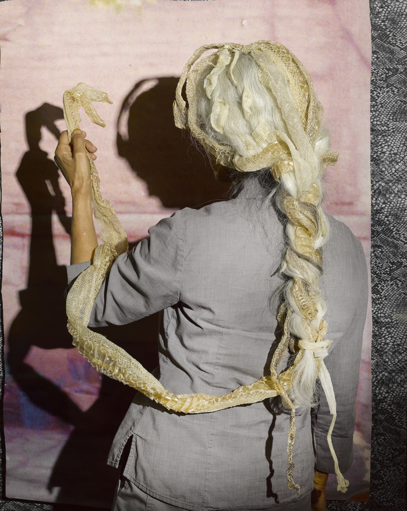 Le sue composizioni, che combinano immagini di archivio, persone, accessori di scena e animali, sono quadri costruiti ad arte, in cui ogni dettaglio è carico di simbolismo e significati. In questo senso, la fotografa pratica una forma di «ghostwriting», narrando le esperienze dei genitori senza utilizzare la loro voce.
