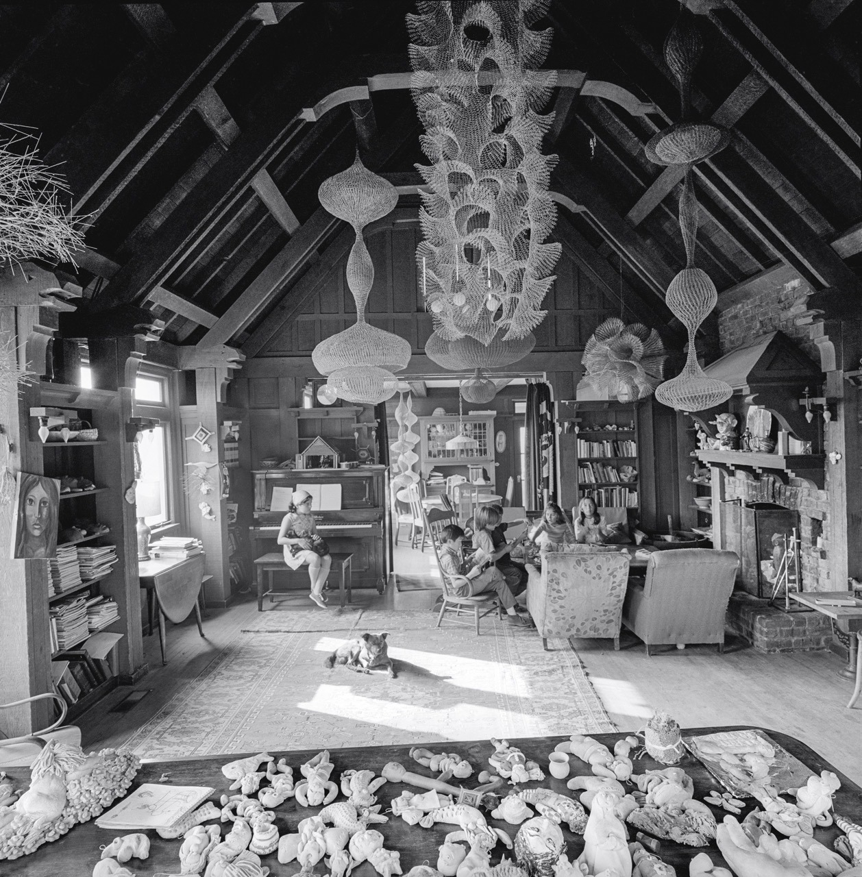 Ruth Asawa con i figli nel soggiorno della casa di Noe Valley, San Francisco, 1969. Foto © 2026 Rondal Partridge Archives. © 2026 Ruth Asawa Lanier, Inc., Courtesy di David Zwirner
