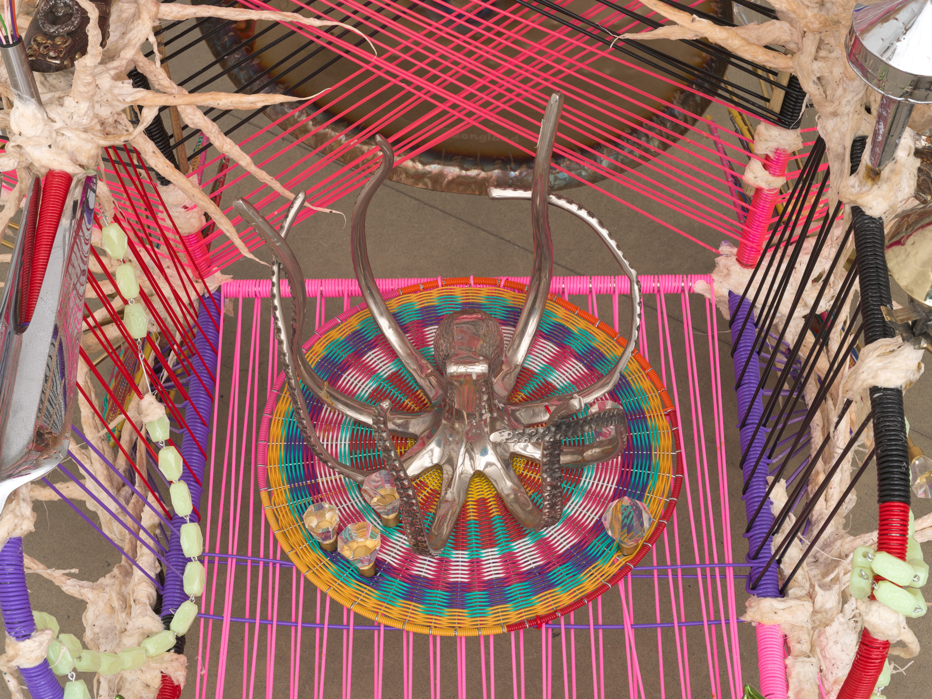 «Le soglie sono contrassegnate da grandi banner sospesi color indaco che dalle travi scendono a sfiorare il pavimento», ha raccontato Marie Hélène Pereira, predisponendo i sensi al disvelamento di un ambiente e segnalando il passaggio al successivo. La Sala Chini conduce i visitatori al cuore del Padiglione Centrale e li introduce al vocabolario di quella dimensione della mostra che Koyo stessa ha chiamato «Shrines» (Altari), immaginata da lei come un tributo a due appassionati creatori di mondi: Issa Samb (1945-2017) e Beverly Buchanan (1940-2015). Artista, poeta, drammaturgo e cofondatore del collettivo rivoluzionario Laboratoire Agit’Art a Dakar, Samb è stato una presenza costante, un mentore e una fonte d’ispirazione per Koyo. L’opera di Buchanan, da cui Koyo era rimasta profondamente colpita, consiste in letture sofisticate e provocatorie di luoghi e comunità condotte attraverso un approccio antimonumentale alla Land Art e all’arte pubblica, in particolare alla scultura, e collocate in luoghi segnati da memorie storiche irrisolte. Tanto Samb quanto Buchanan privilegiavano la forza generativa dell’arte anziché la sua mera oggettualità e le pratiche convenzionali di conservazione dell’oggetto artistico». Importante sarà anche la sezione dedicata al progetto educativo e alle scuole che Koyo Kouoh ha voluto fondare, dove energie e risorse sono orientate a un fine sociale, nell’idea di un’arte come baluardo di «meraviglia opposta al cinismo». Una Biennale che si promette «lontana dal fragore orchestrale e le marce militari dal passo cadenzato», per prendere vita «nei toni sommessi, nelle frequenze più basse, nei mormorii, nelle consolazioni della poesia». Parola di Koyo Kouoh.