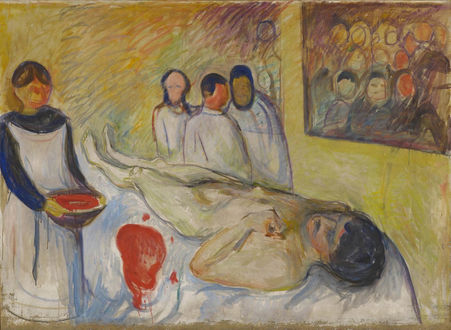 Munch mantenne stretti rapporti con i medici per tutta la vita, il che gli permise di visitare le case dei malati e di entrare nelle istituzioni mediche. Disegnava e dipingeva pazienti, medici e infermieri, insieme ai loro cari riuniti attorno al letto di morte. L’intensità dei suoi incontri diretti con le camere dei malati nonché le sue esperienze personali di malattia e morte ispirarono alcune delle sue opere più grandi, molte delle quali sono incluse in «Lifeblood». Tra queste vi è la versione originale di «La bambina malata» (1885-6), che, pur essendo stata sempre  associata al ricordo dell’artista della sorella Sofie, morta di tubercolosi, fu anche ispirata da Betzy Nilsen, una ragazza dai capelli rossi che Munch aveva incontrato durante una visita a domicilio in cui aveva accompagnato il padre.