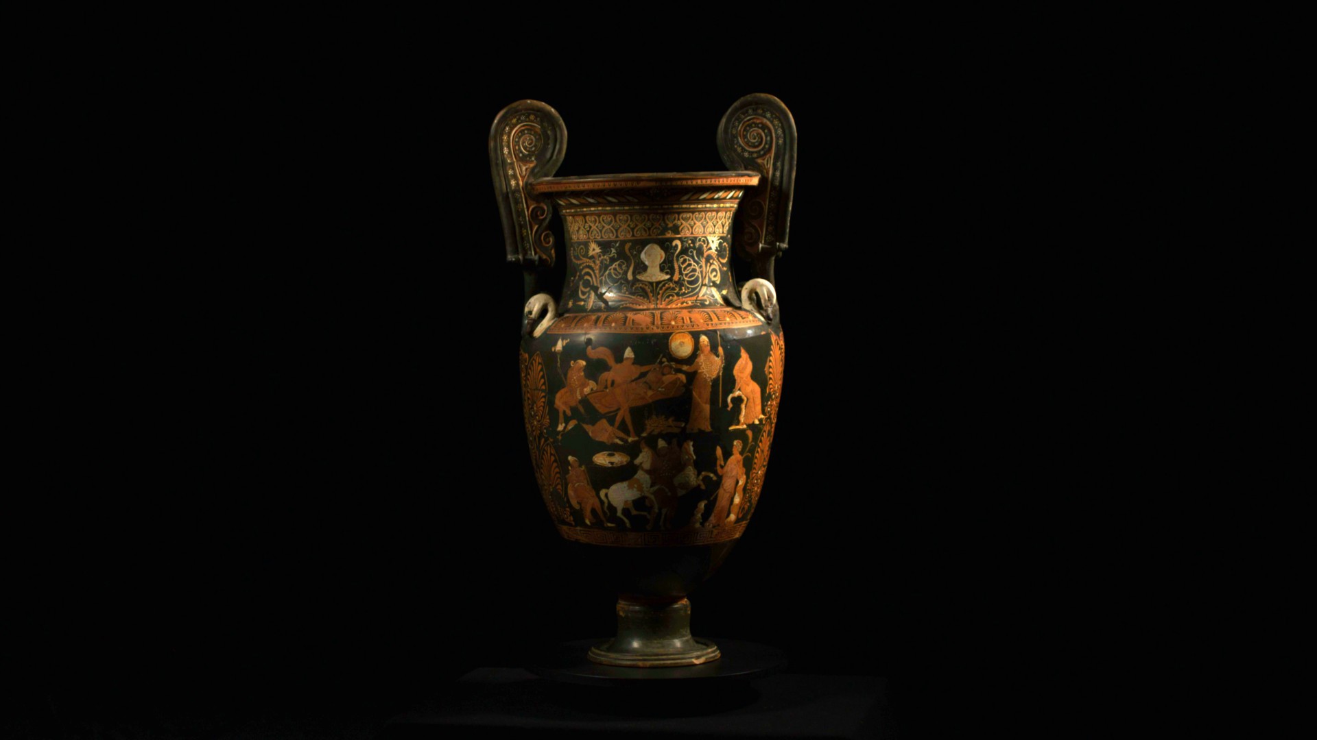 In quali forme, attraverso quali intermediari, hanno raggiunto la Germania? Da dove provenivano e per chi erano stati creati gli esemplari più monumentali, i crateri apuli a figure rosse riccamente decorati e istoriati? Alla prima domanda non sembra si possa più dare una risposta, sebbene ulteriori ricerche e l’incrocio tra documenti d’archivio e atti d’indagine potrebbero riservare, in futuro, esiti interessanti. Alla seconda, invece, grazie all’iconografia riconosciuta dagli specialisti, i curatori della mostra Luigi La Rocca, Massimo Osanna e Luana Toniolo hanno risposto attribuendo a questi vasi una provenienza daunia. Una subregione a nord della Puglia, la Daunia, costituitasi a seguito della frantumazione culturale dell’«ethnos» indigeno, iapigio, dopo l’insediamento dei coloni greci nella città di Taranto (VIII secolo a.C.).