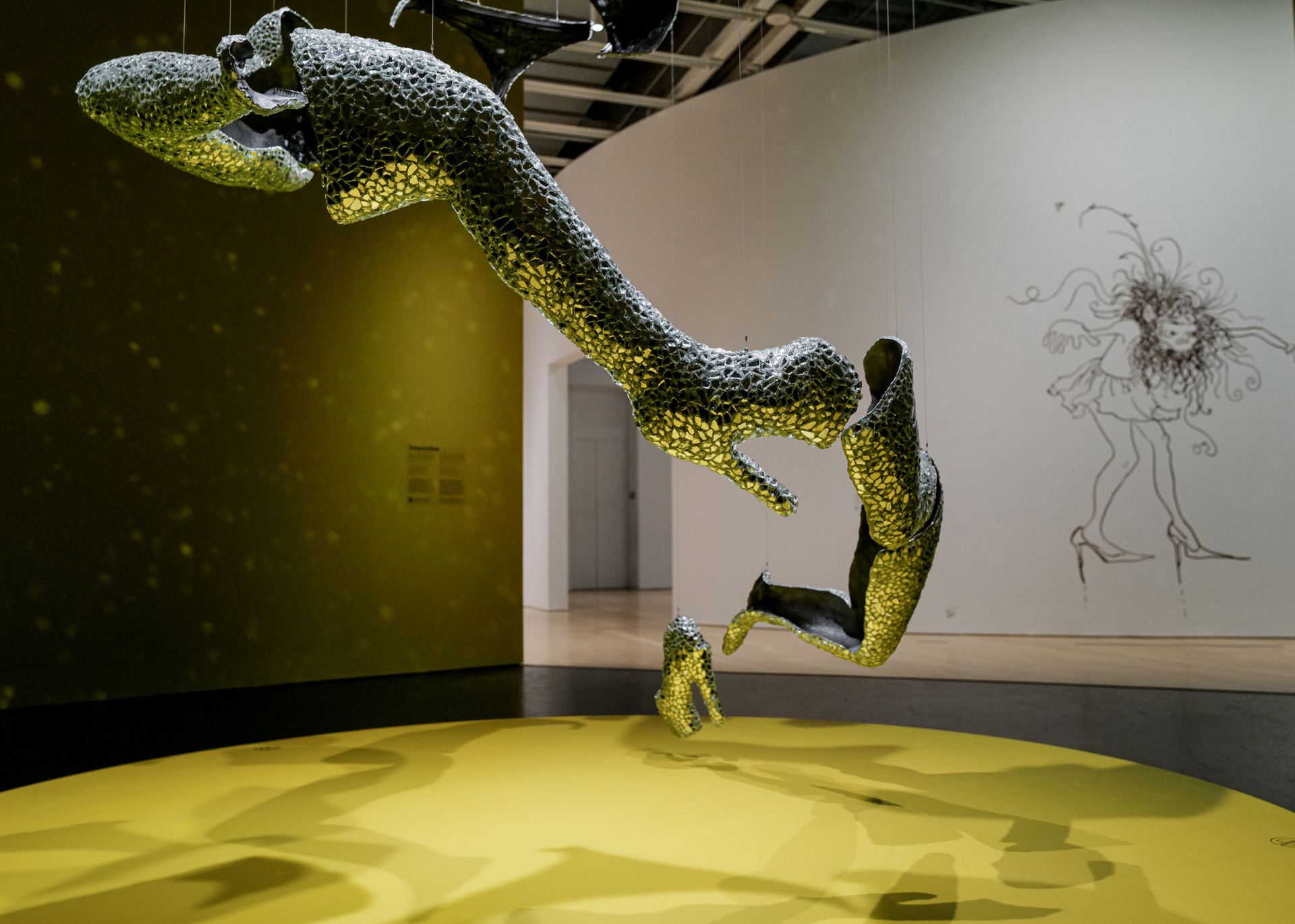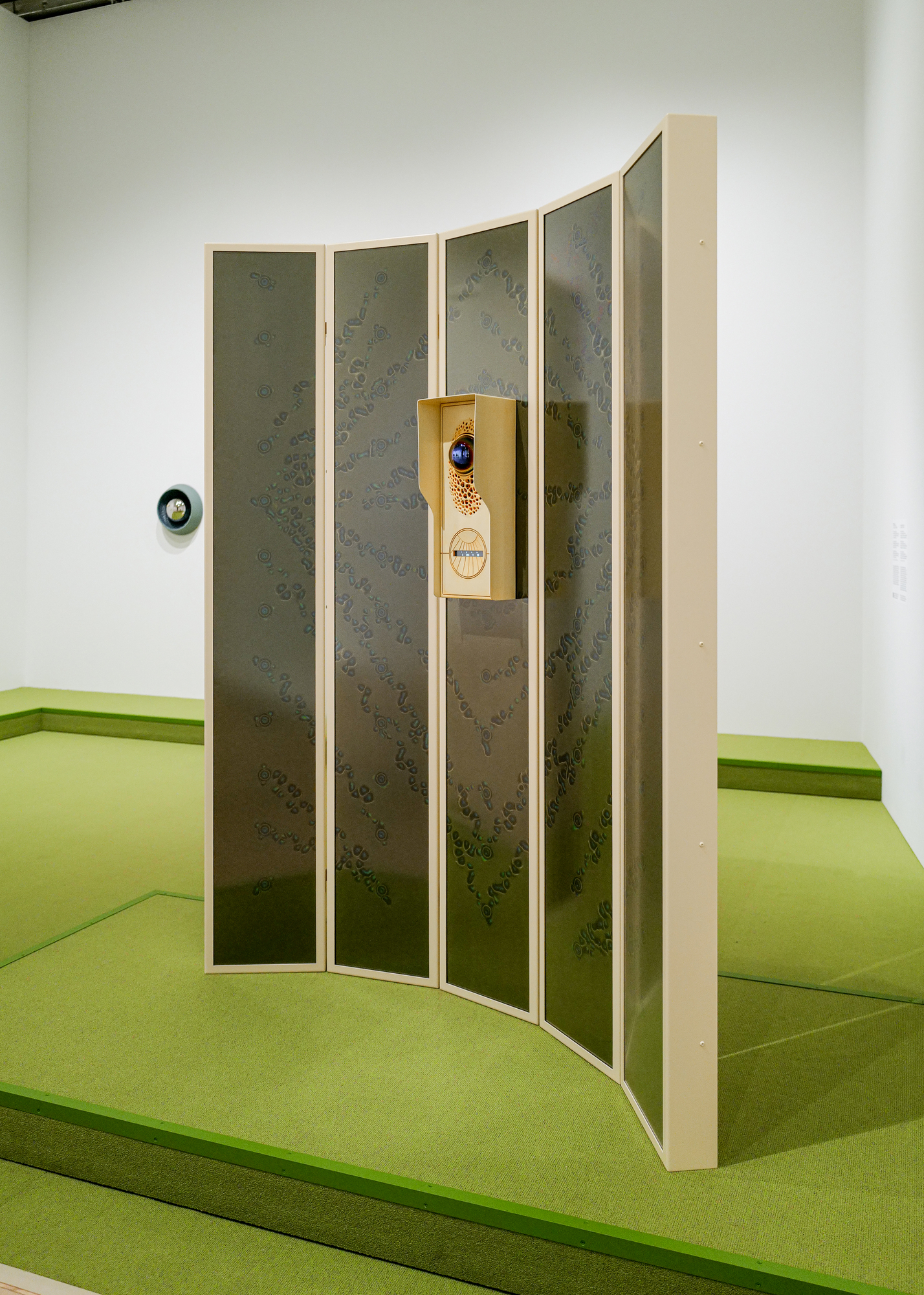 Sono invece in relazione con l’ecosistema le ceramiche create da Erin Jane Nelson che, fungendo da macchine fotografiche installate nel paesaggio per catturarne le dinamiche ecologiche, producono un ritratto intimo di un paesaggio americano che nella tradizione iconografica è immenso e potente. Di scala diversa, ma con una stessa delicatezza, sono i tappeti di Teresa Baker che utilizzano erba sintetica per riflettere sulle relazioni tra naturale e artificiale e tra astrazione e paesaggio. Di natura sensoriale è l’ambiente creato dal colombiano Oswaldo Macià che, in «Requiem for the Insects», costruisce uno spazio di suoni e odori invitando i visitatori a riflettere sull’importanza degli insetti per l’equilibrio del pianeta.