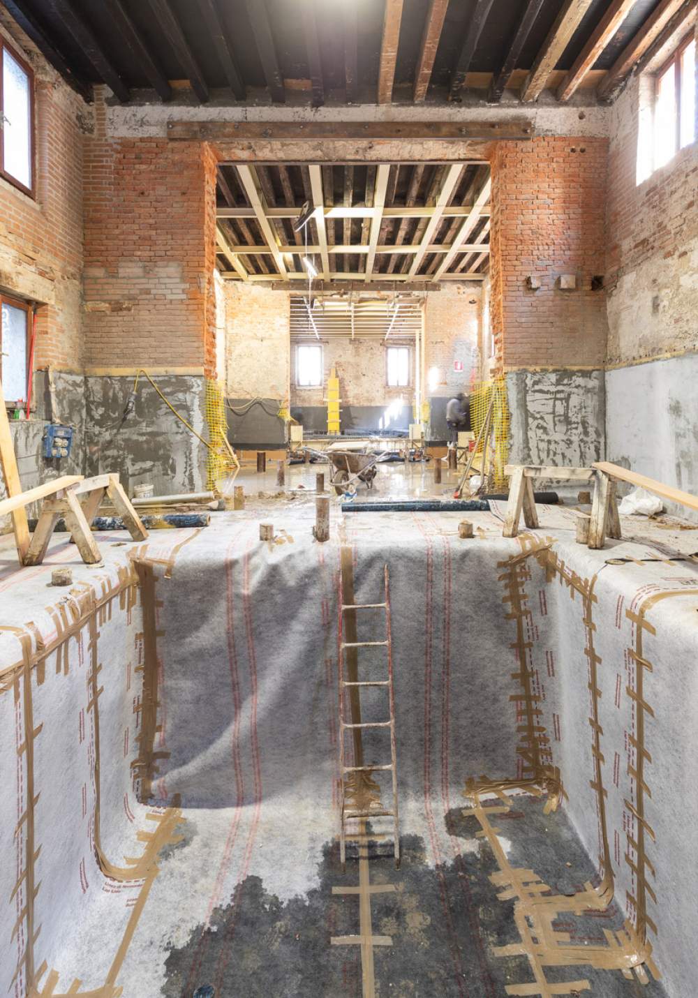 Il cantiere di Palazzo Manfrin in occasione dell'allestimento della mostra «Anish Kapoor» (2022)