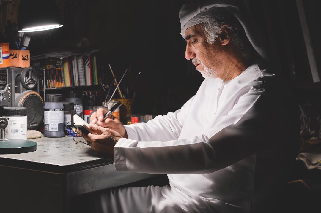 L’artista concettuale Abdullah Al Saadi presenta una serie di opere che documentano i suoi viaggi in bicicletta nella natura selvaggia della Penisola araba