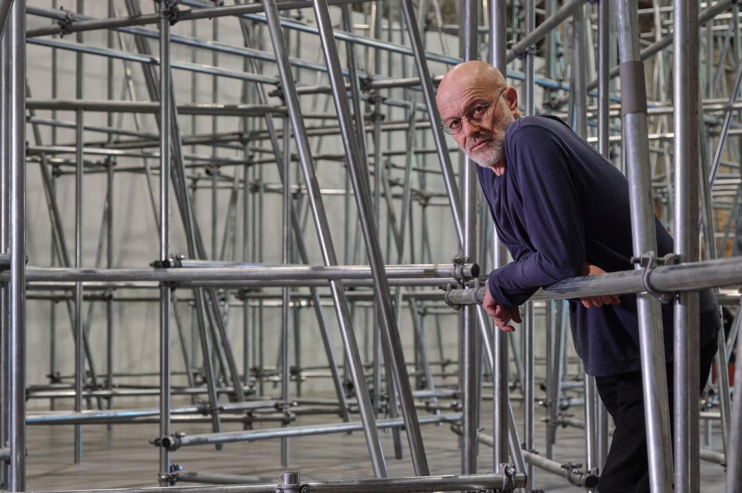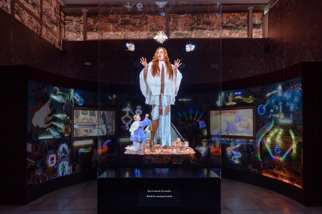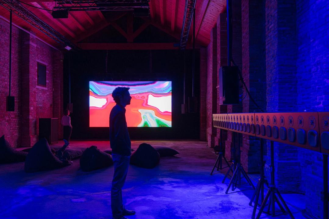 Il progetto di Massimo Bartolini è un continuum tra interno ed esterno ed è la musica ad accompagnare il visitatore. Gli spazi all’Arsenale, sulle onde di un ipnotico mantra, sono il luogo della temperanza e di un’esperienza spirituale in cui connettersi a sé stessi e, quindi, alla moltitudine