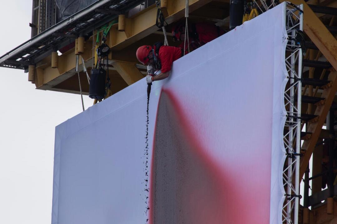 Gli attivisti hanno collocato su una piattaforma della Shell nel Mare del Nord una gigantesca tela dell’artista anglo-indiano «insanguinata», simbolo delle ferite (costosissime) inflitte al mondo dalle compagnie petrolifere e del gas