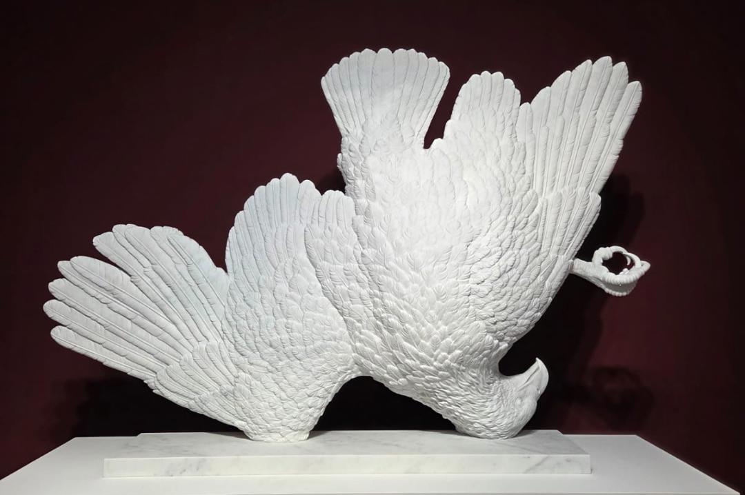Ad Art Basel Miami 2025 Gagosian propone per 950 mila dollari una scultura dell'artista italiano che raffigura l'animale mentre sfiora il terreno, simbolo della riduzione del potere alla sua essenza materiale