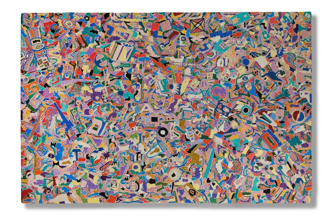 Appartenente all'omonima serie di ricami su tela realizzato dopo il 1982, «Tutto» è in asta a Parigi il 5 giugno 2025 con la stima di 400-600 mila euro