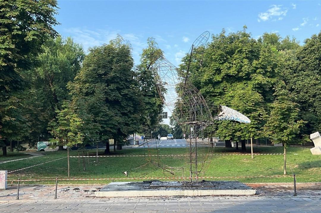 Della scultura in cartapesta posizionata all’ingresso del Palazzo dell’Arte è rimasta solo la struttura in metallo. Le autorità sono subito accorse e hanno fermato un 33enne senza fissa dimora con l’accusa di incendio doloso